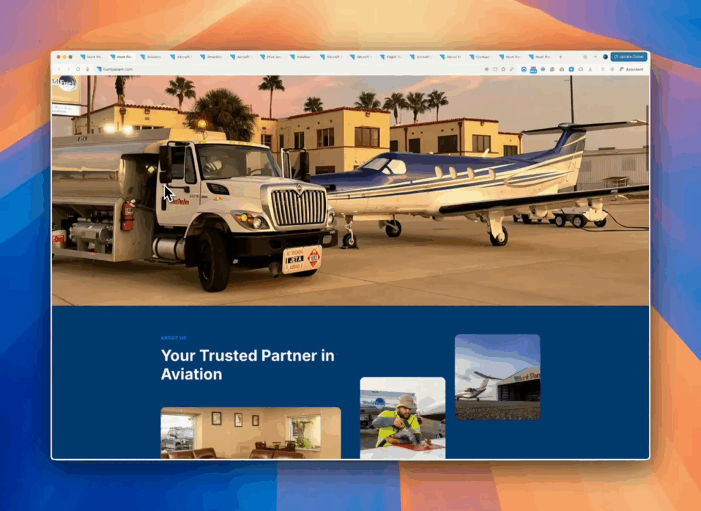 This project matters because it elevates Hunt Pan Am’s digital presence in concrete ways: authentic visuals, clearer service pathways, operational transparency, and an easier mobile experience. It clarifies what the company does best — from full-service FBO operations to Latin American flight support — and positions them as a credible aviation partner.